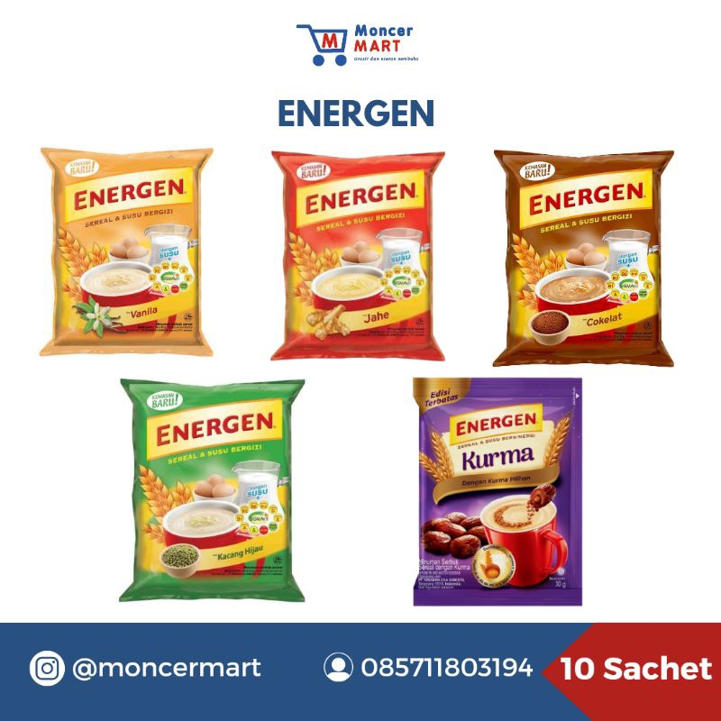 Energen adalah minuman susu dan sereal yang cocok untuk menghilangkan rasa lapar. Minuman ini juga mengandung karbohidrat, paduan vitamin, mineral dan protein yang dibutuhkan tubuh dalam komposisi yang tepat. Rasanya ada beberapa macam seperti kacang hijau, vanilla dan coklat. Semua sama enaknya tergantung selera saja. Kalau minum 1 gelas saja sudah terasa, seperti perasaan lapar sudah hilang karena perut sudah terisi. Kalau untuk sarapan kurang cocok, tapi kalau lagi buru – buru minuman cereal ini membantu menjaga kondisi badan agar perut tetap terisi biar tidak masuk angin.