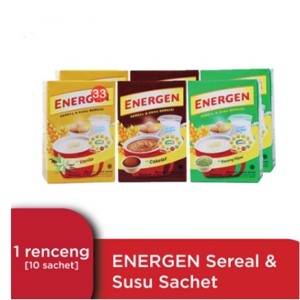 Energen adalah minuman susu dan sereal yang cocok untuk menghilangkan rasa lapar. Minuman ini juga mengandung karbohidrat, paduan vitamin, mineral dan protein yang dibutuhkan tubuh dalam komposisi yang tepat. Rasanya ada beberapa macam seperti kacang hijau, vanilla dan coklat. Semua sama enaknya tergantung selera saja. Kalau minum 1 gelas saja sudah terasa, seperti perasaan lapar sudah hilang karena perut sudah terisi. Kalau untuk sarapan kurang cocok, tapi kalau lagi buru – buru minuman cereal ini membantu menjaga kondisi badan agar perut tetap terisi biar tidak masuk angin.