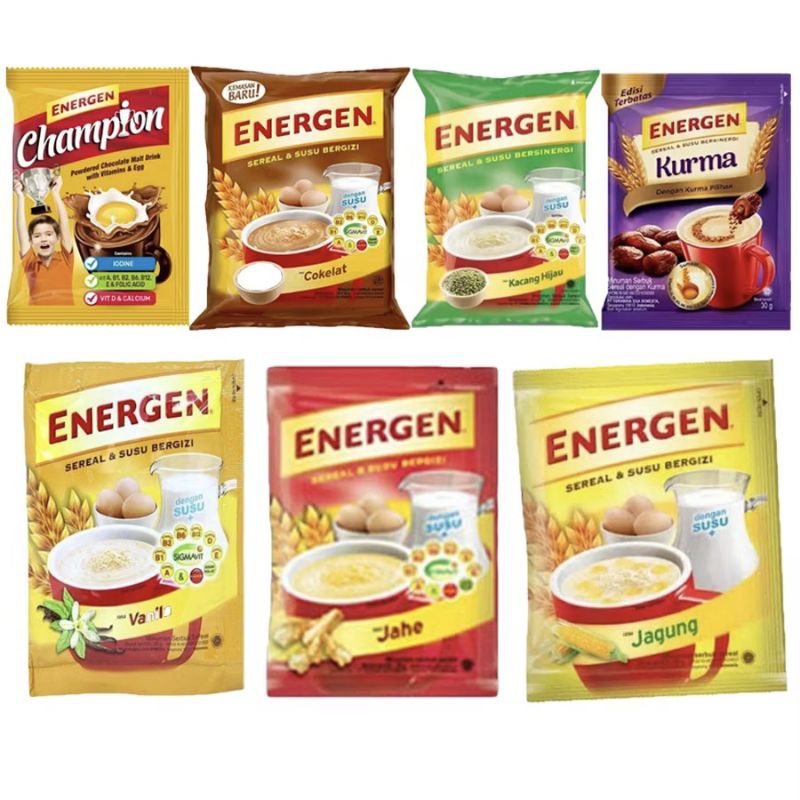 Energen Sereal Susu Rasa coklat/kacang hijau/vanila/jahe/kurma Isi 10sachet/renceng