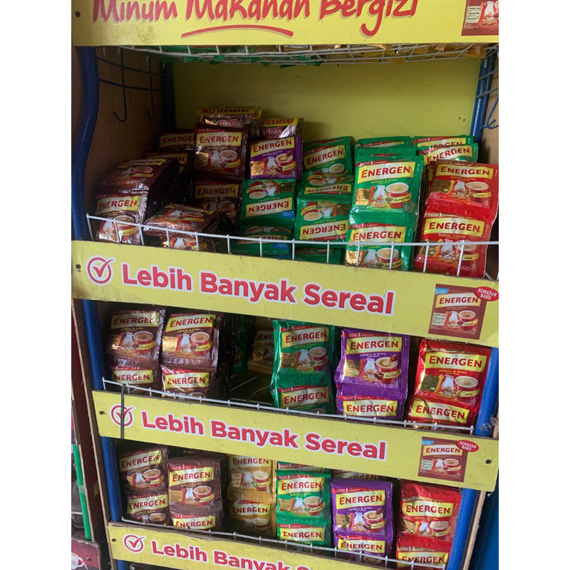 Energen sereal 1 renteng terdiri dari 10 bungkus dengan berat 34gr/bungkus. harga 18.500