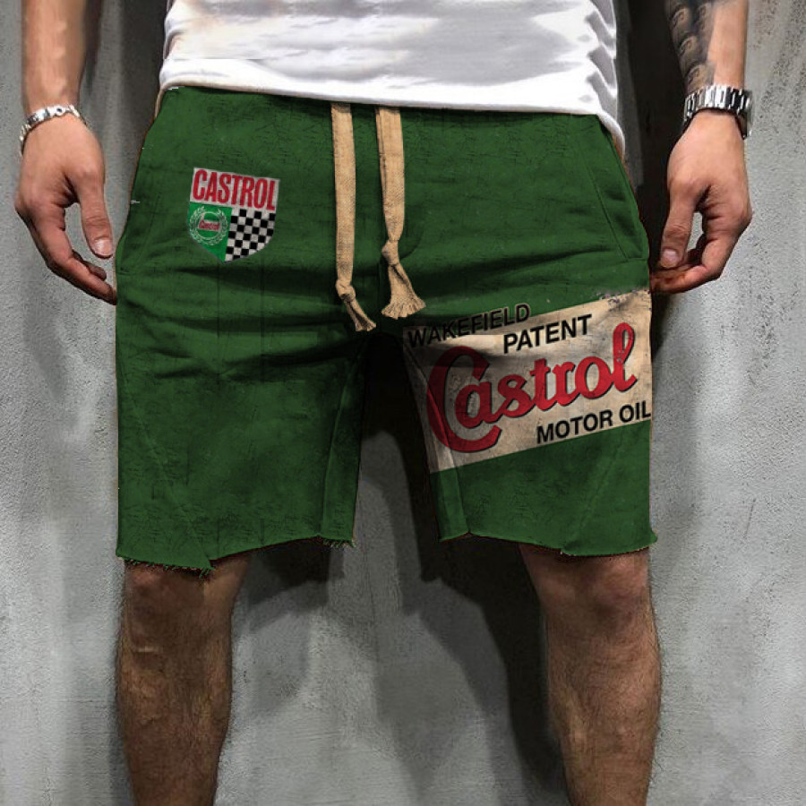 Engine Oil Logo Print Green Casual Shorts