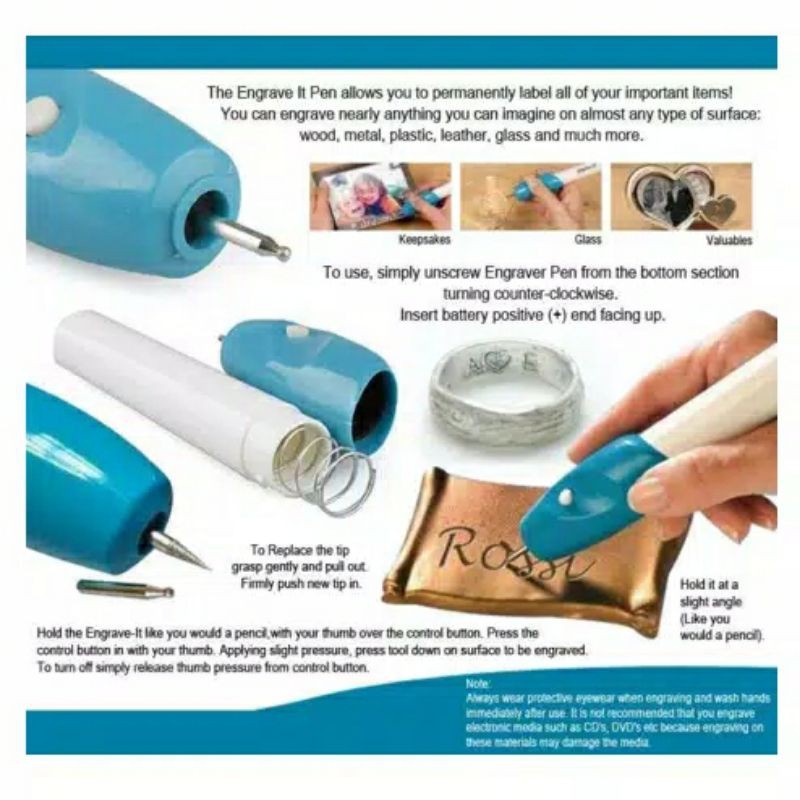 Engraver It adalah alat ukir seperti Pena yang di desain menarik untuk mengukir di atas sendok, piring, metal, plastik dll.