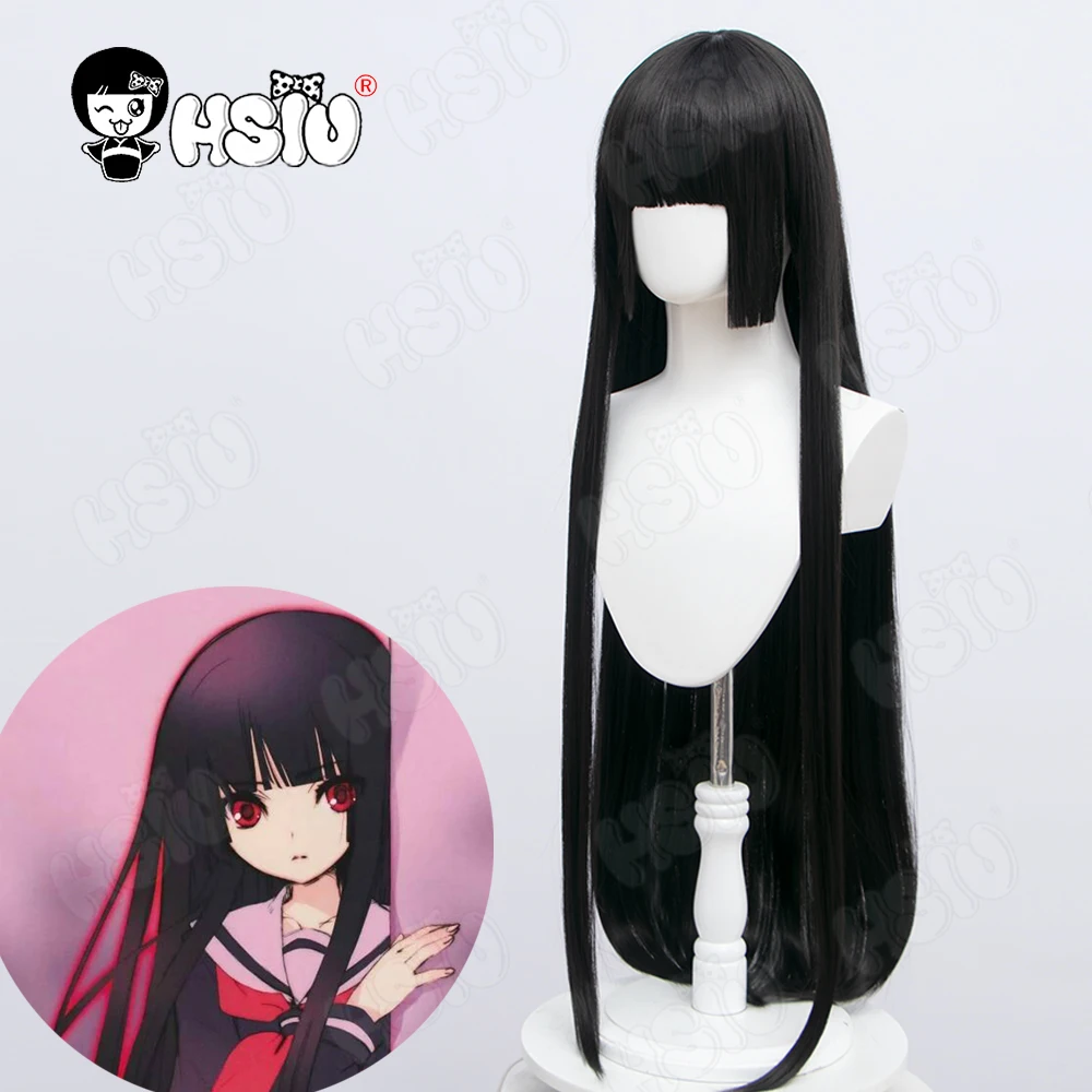 Enma Ai, парик для косплея, аниме, Hell Girl, косплей, hhsiu, synthetic, синтетический парик, черные длинные волосы + бесплатная шапочка, вечерние волосы на Хеллоуин, Hell Girl