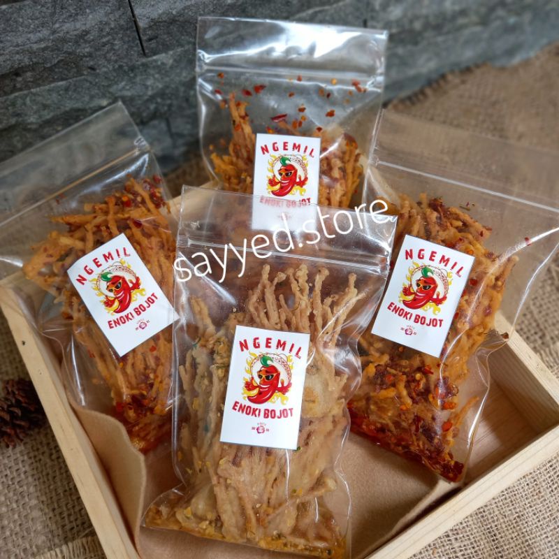 Jamur enoki yang diolah menjadi cemilan kriuk kekinian, cocok buat teman makan nasi.