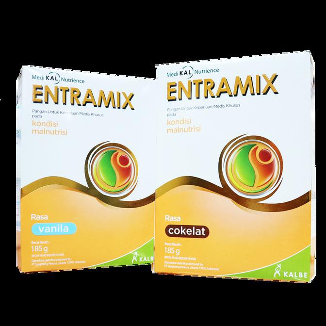 Entramix adalah nutrisi seimbang lengkap yang diformulasikan khusus oleh PT. Kalbe untuk memenuhi kebutuhan gizi orang dewasa dan lansia. Entramix memiliki kalori yang cukup untuk menggantikan makanan pada umumnya dan mengandung serat pangan untuk menjaga metabolisme tubuh. Serta entramix tidak mengandung laktosa sehingga tidak menyebabkan diare.