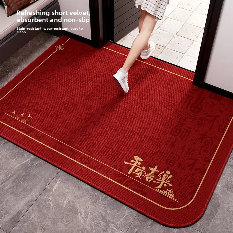 Entrance Door Mat Red Moving in Welcome Non-Slip Easy Clean Entrance Rug Home Decor Crystal Velvet Geometric Pattern
