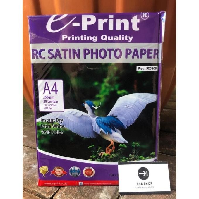 Nama Produk : EPRINT RC SATIN PHOTO PAPER 260 GSM 20 SHEETS A4 - E-PRINT KERTAS FOTO RC SATIN 260 GSM 20 SHEETS A4
