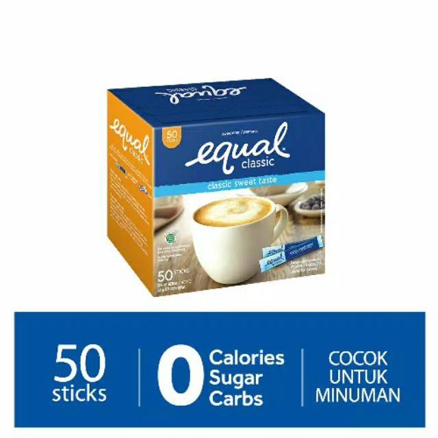 Equal Sachets merupakan produk makanan diet berupa gula rendah kalori yang baik bagi penderita diabetes karena mengandung aspartam yaitu pemanis buatan yang tidak memberikan kalori bagi tubuh.Aspartam merupakan salah satu dari enam pemanis buatan yang disetujui oleh FDA untuk digunakan pada penderita diabetes karena tidak memberikan kalori dan tidak memiliki efek pada gula darah. Aspartam memiliki kalori yang sangat rendah dan bebas gula tetapi rasanya 200 kali lebih manis daripada gula biasa. Produk ini memiliki kemasan 1 Dos isi 50 Pcs yang dapat digunakan untuk keperluan sebagai berikut: pemanis rendah kalori, gula diet, pemanis buatan.
