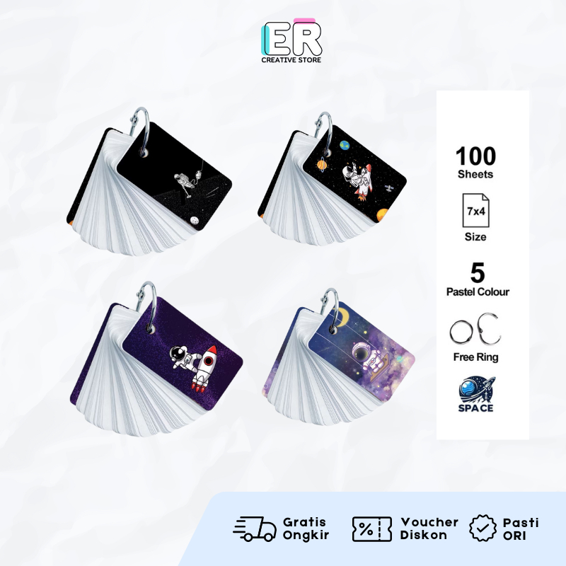ErCreative SPACE SERIES 100 Lembar FLASH CARD Paper Notebook Mini Warna Memopad Note Aesthetic Lucu