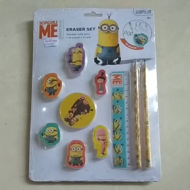 Dilengkapi 7 eraser with lrint + 2x pencil + 1x ruler