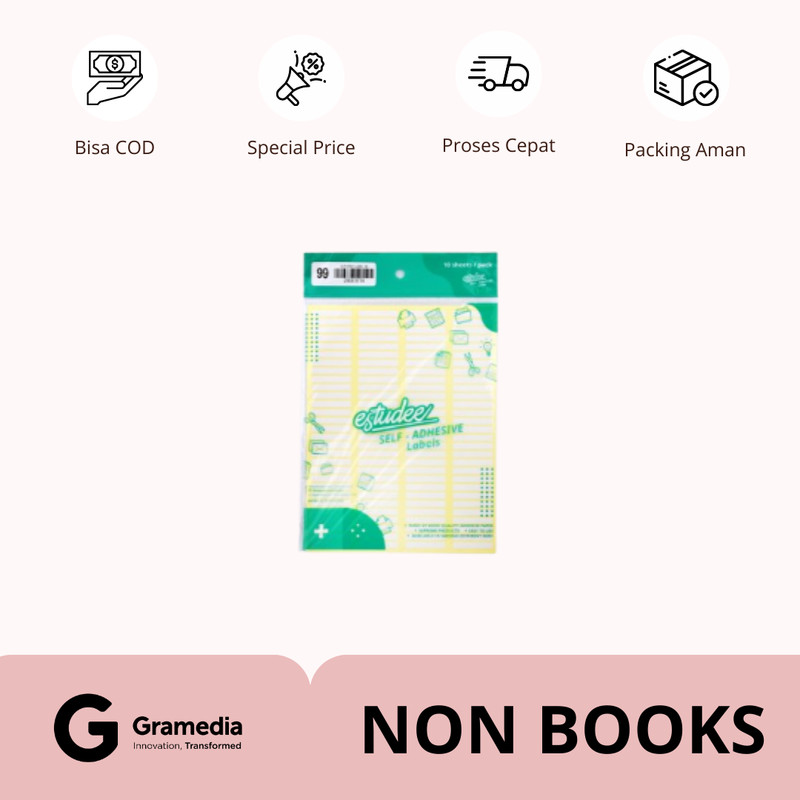 Estudee Label 99 adalah stiker label praktis untuk melabeli buku, alat tulis, atau perlengkapan sekolah lainnya. Dapat ditulis dengan pulpen, spidol, atau pensil dengan hasil jelas dan tidak mudah luntur. Ukurannya ideal dan mudah ditempel pada berbagai permukaan. Membantu anak mengenali barang miliknya dengan mudah. Cocok untuk keperluan sekolah dan rumah.
