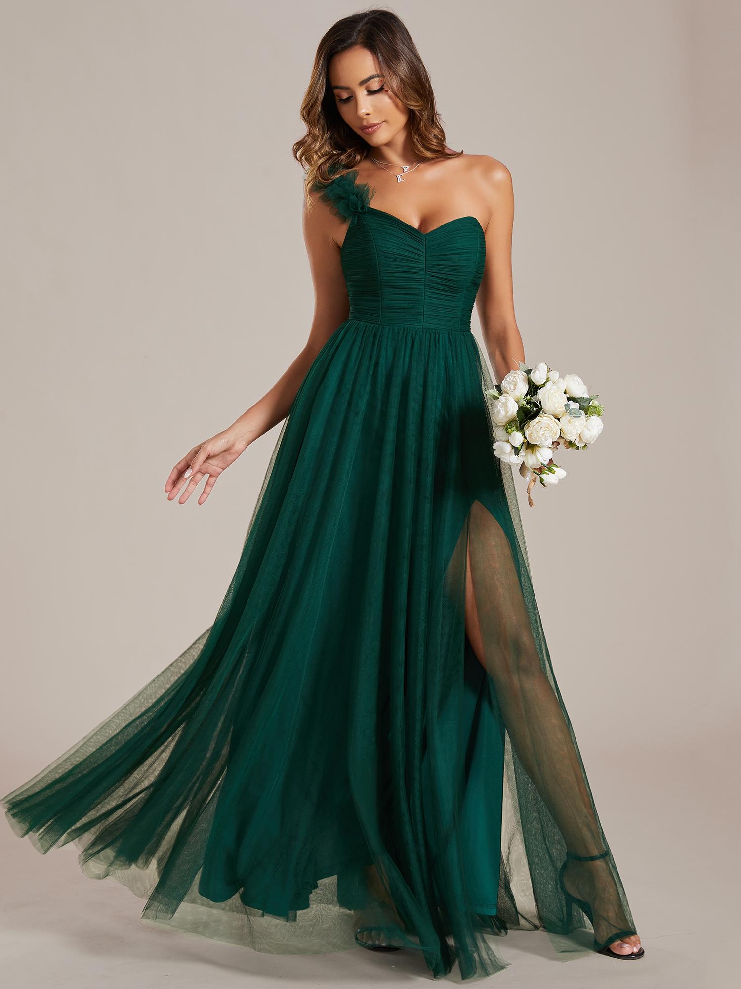 Ever-Pretty женское плиссированное платье трапециевидной формы из тюля с высоким разрезом и без рукавов на одно плечо 4XL темно-зеленого