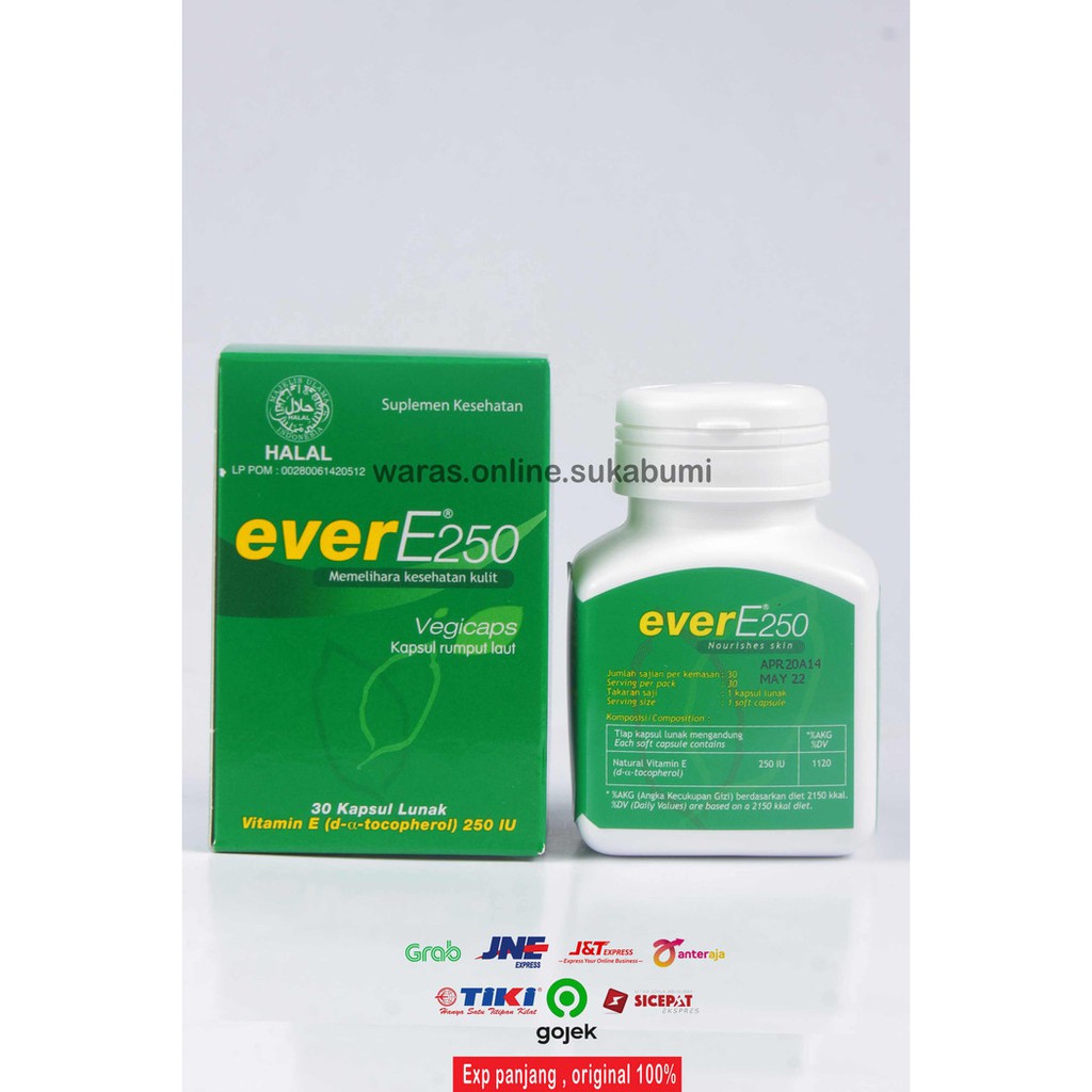 Ever E 250 adalah obat yang digunakan untuk membantu memenuhi kebutuhan vitamin E harian dan memelihara kesehatan kulit. Obat ini merupakan golongan obat produk konsumen yang dijual secara bebas. Ever E 250 mengandung zat aktif vitamin E.