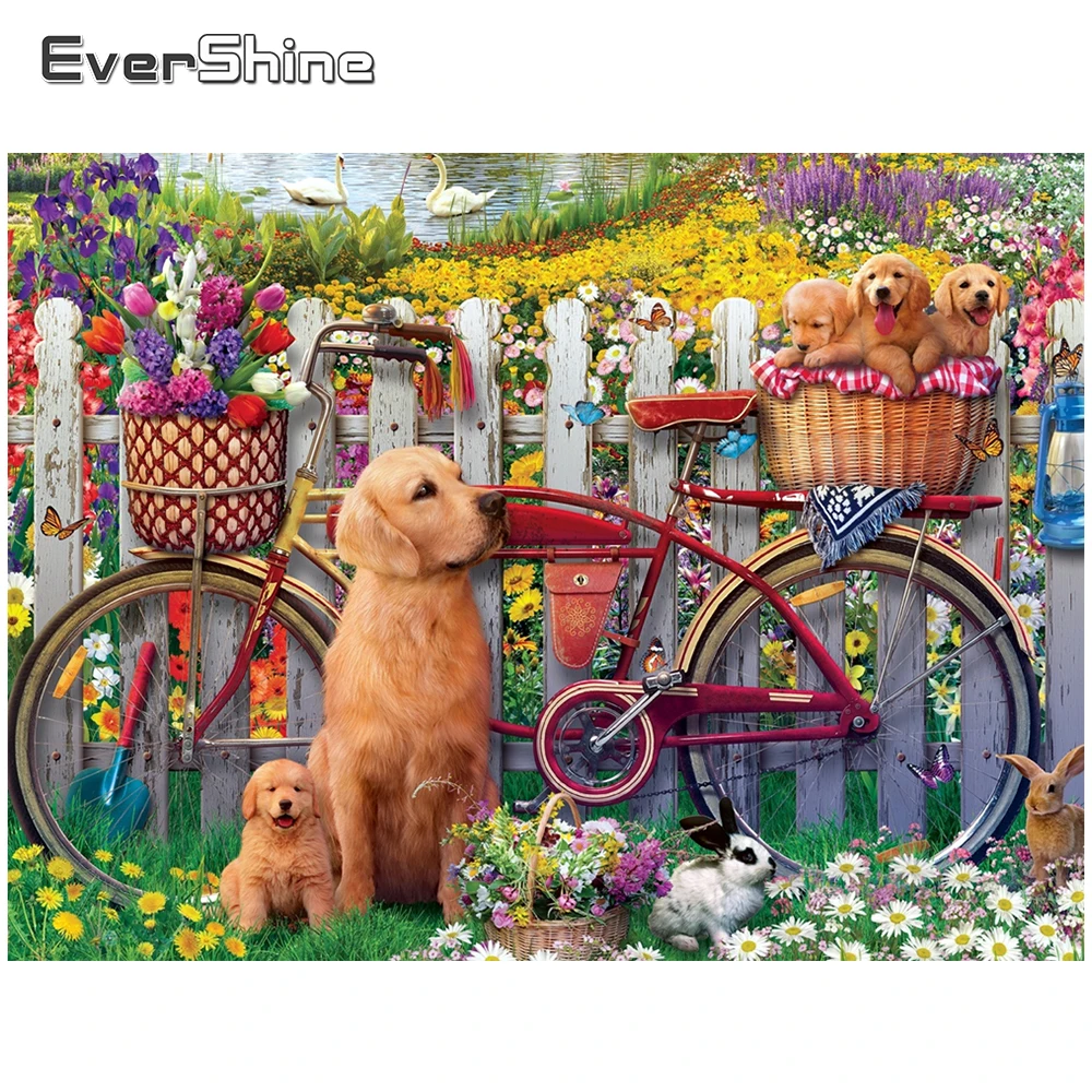EverShine полная площадь алмазная вышивка животные картина из страз алмазная мозаика собаки сад рукоделие Алмазная живопись велосипед вышивка ...