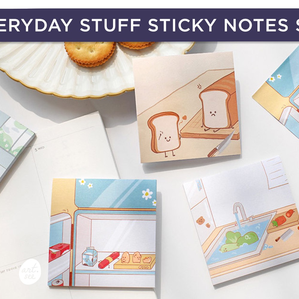Catatan tempel (post-its) yang ini akan memeriahkan harimu dengan karakter imut-imutnya. Ilustrasi makanan dan buah-buahan lucu menghiasi tiap lembar kertasnya, yang bisa kamu tulisi dan tempel di dinding atau depan monitor.