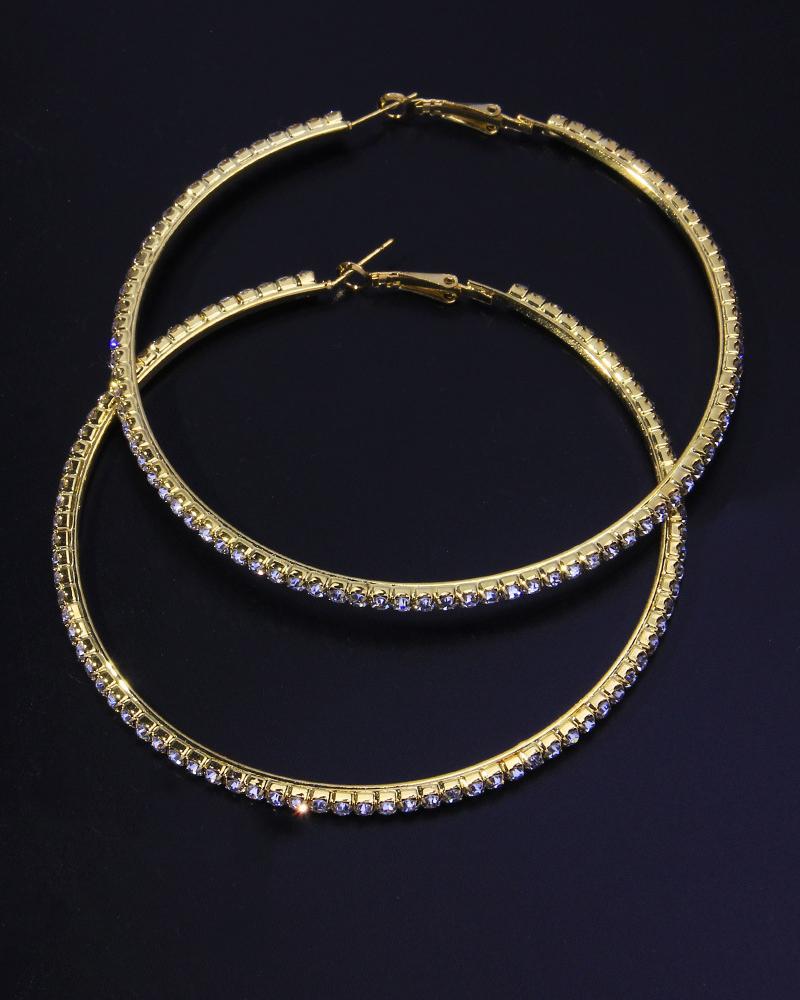 Exaggerated Rhinestone Hoop Earrings, Gold