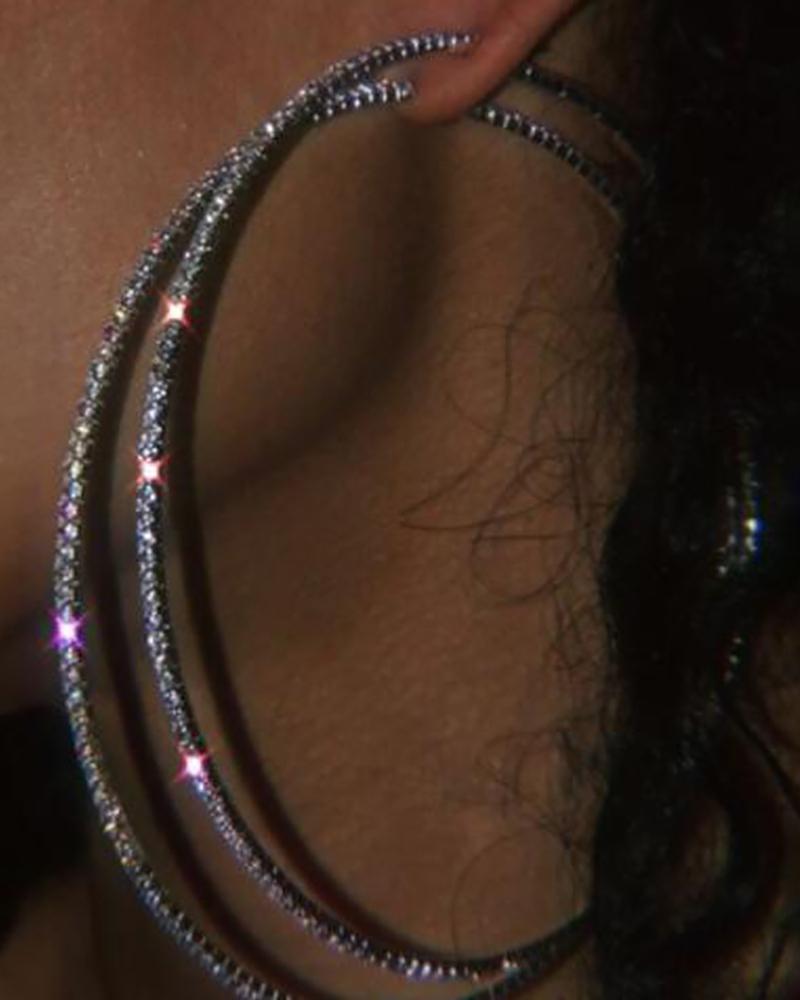 Exaggerated Rhinestone Hoop Earrings, Silver