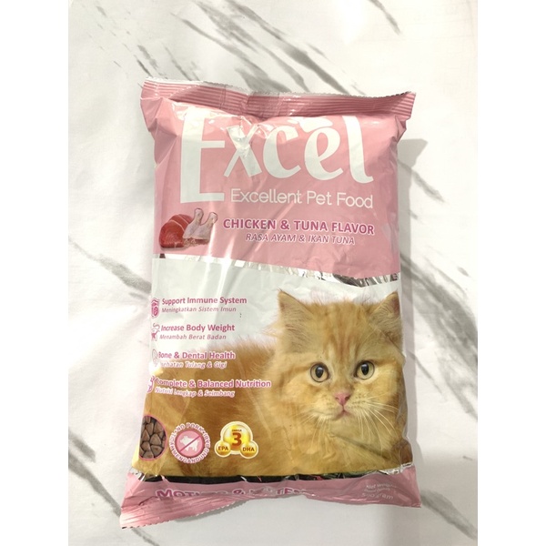 EXCEL CAT adalah jajaran produk berkualitas tinggi kami menggunakan bahan baku impor berkualitas yang 100% alami. Protein tinggi berasal dari daging ayam dan ikan asli, kaya akan taurine, omega 3 dan 6 serta mineral yang baik bagi tubuh; EXCEL CAT merupakan makanan yang bergizi dan lezat bagi kebutuhan kucing Anda, di setiap tahap kehidupannya.