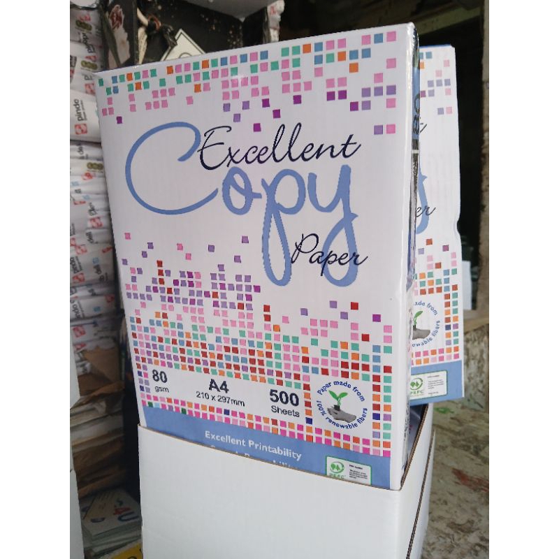 "Kertas HVS Excelent Copy Paper memiliki kualitas terbaik.Kertasnya putih dan gramaturnya sama tiap lembarnya. Teksturnya mudah menyerap tinta/toner sehingga sangat cocok buat printer dan mesin foto copy anda"
