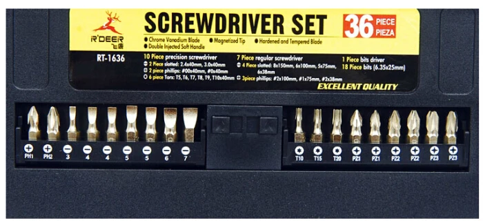 Excellent quality R'Deer RT-1636 screwdriver setver Set