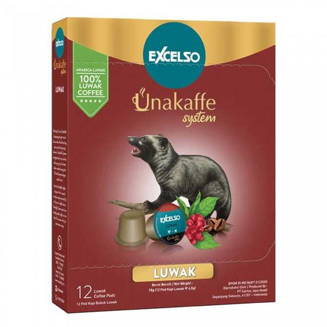 Excelso Unakaffe Luwak adalah varian pod kopi yang mengemas salah satu kopi dengan kualitas yang baik. Buah kopi yang berasal dari perkebunan kopi di Rante Karua, Sulawesi Selatan, tersebut dimakan dan difermentasikan oleh luwak liar. Proses pemilihan dan sangrai dilakukan dengan sepenuh hati untuk hasil yang optimal. Pod Kopi Excelso Unakaffe dirancang dengan mesin khusus dan dihadirkan bagi para pecinta kopi yang dinamis. Unakaffe System menghasilkan kopi kualitas baik yang siap dinikmati dalam waktu kurang dari 35 detik hanya dengan sekali tekan.