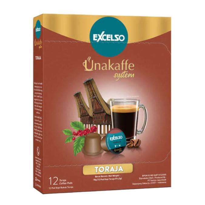 Excelso Unakaffe Toraja adalah varian pod kopi yang mengemas hasil kopi dari Tana Toraja, Indonesia. Kopi yang sudah menjadi salah satu kopi favorit ini memiliki citarasa khas yang tidak dapat ditemukan pada kopi lainnya. Dipanen dan dikelola bersama dengan petani lokal yang menanam biji kopi ini dengan sepenuh hati, menjadikan kopi ini pilihan tepat bagi para pecinta kopi yang hanya ingin menikmati kopi dengan kualitas terbaik. Pod Kopi Excelso Unakaffe dirancang dengan mesin khusus dan dihadirkan bagi para pecinta kopi yang dinamis. Unakaffe System menghasilkan kopi kualitas baik yang siap dinikmati dalam waktu kurang dari 35 detik hanya dengan sekali tekan.
