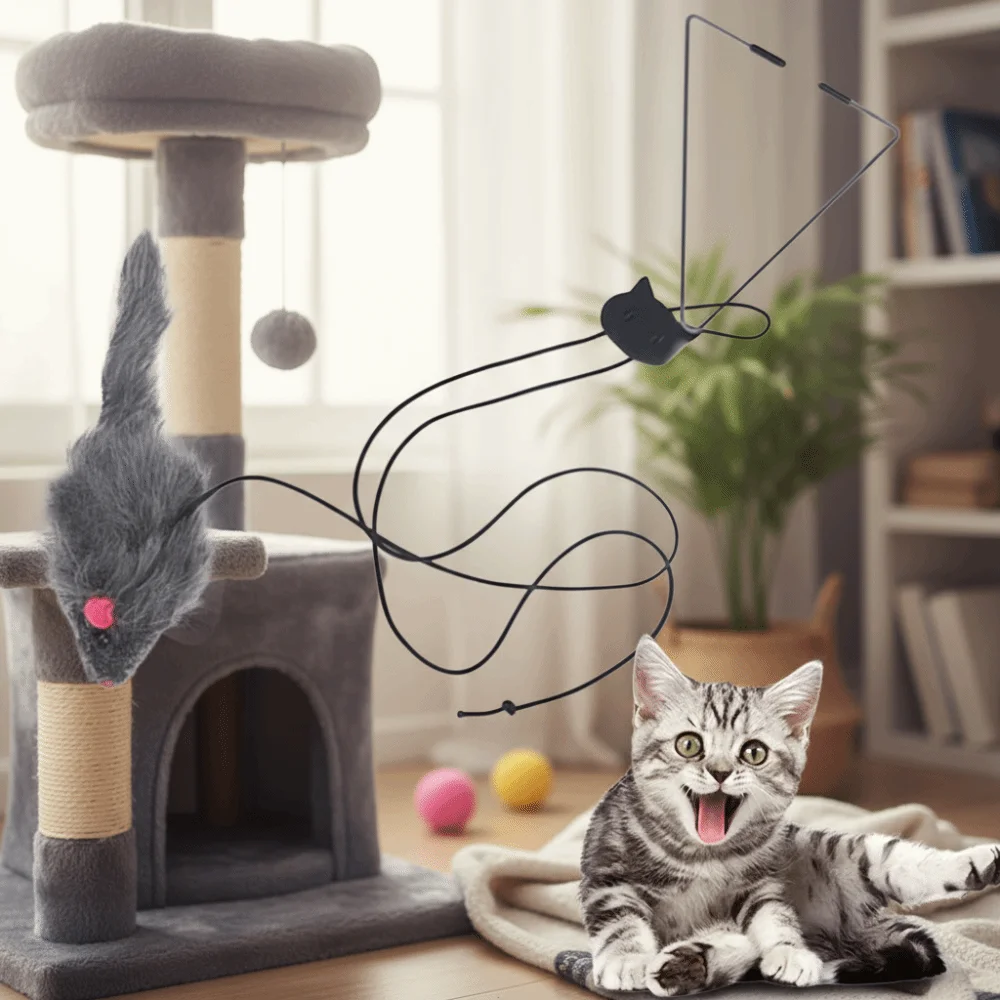 Exercise Triangle Hook Simulation Mouse Adjustable Elastic Rope Hanging Door Retractable Squeaky Cat Interactive Training