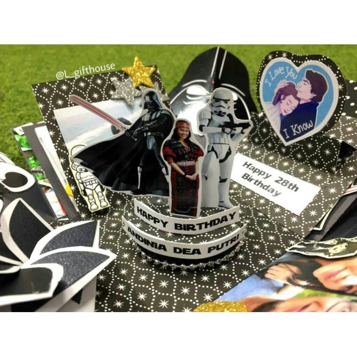 Ini contoh explosion box yang sudah direquest oleh customer bertema "Star Wars - Happy Birthday"