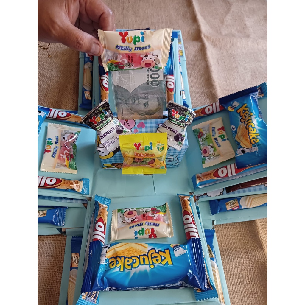 * EXPLODING SNACK BOX 3 TINGKAT + 1 BOX UANG TARIK 25 LEMBAR (2K)