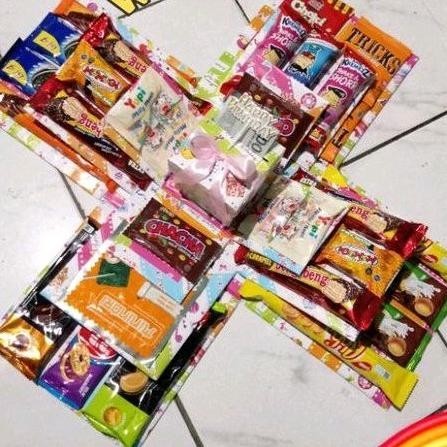 Sudah diisi Snack + box tarik uang + plastik uang 20lbr + topper happy birthday + 1pcs Silverqueen mini