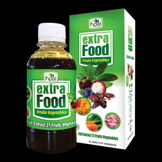 Extra Food suplemen kesehatan alami yang dibuat dari sinergi 23 herbal yang kaya akan antioksidan & serat alami. Mengkonsumsi Extra Food memberikan perlindungan Anda dan keluarga dari radikal bebas.