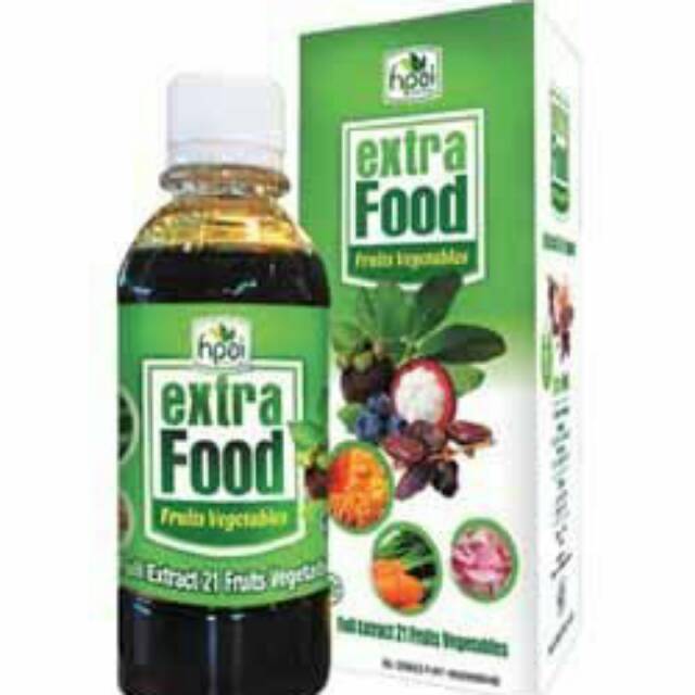 Extra Food HPA (formulator Extra Fruit ) adalah makanan kesehatan herbal alami tradisional dalam sebuah minuman dengan komposisi extraks sinergi dari 23 buah dan sayuran. Extra Food di formulasikan sebagai suplemen berkhasiat untuk mengatasi berbagai penyakit menjaga stamina dan kesehatan tubuh manusia. Extra food kaya dengan serat, vitamin dan nutrisi alamiah.