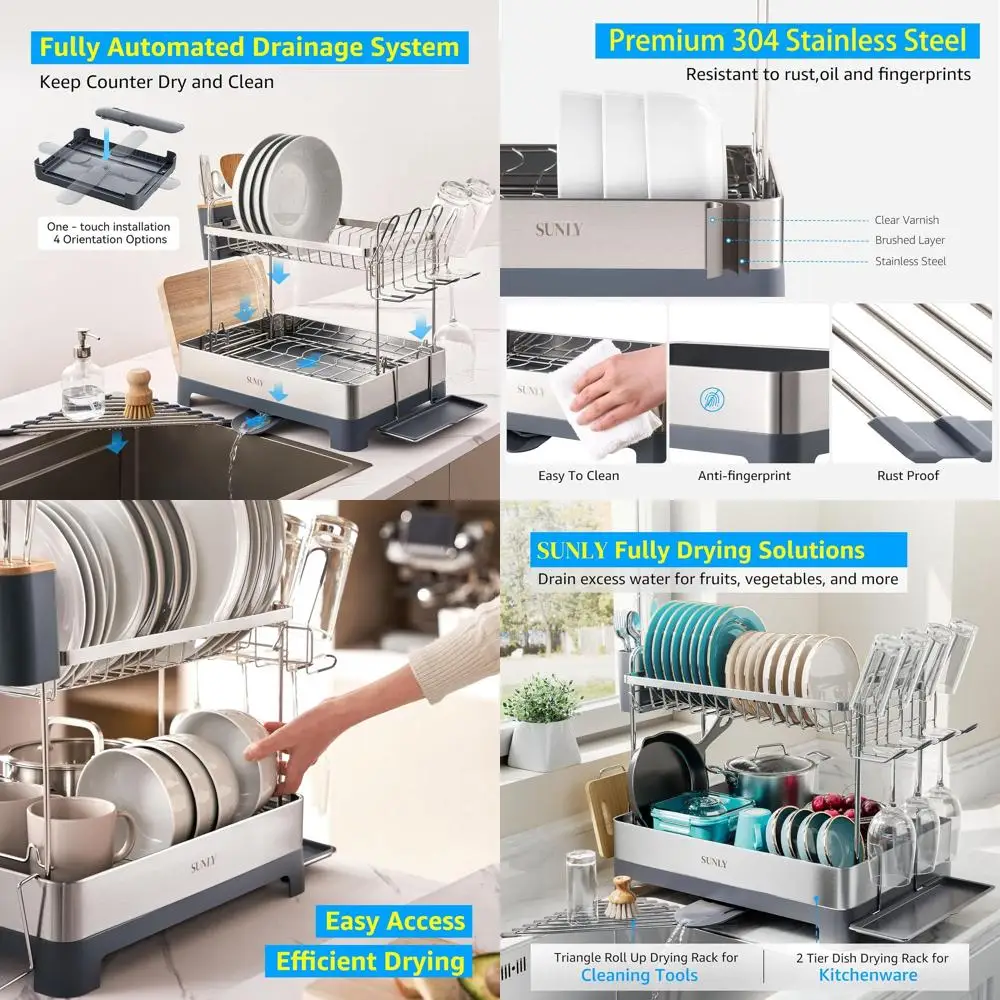 Extra Large 2-Tier Stainless Steel Dish Rack with Drain Board for Kitchen Counter