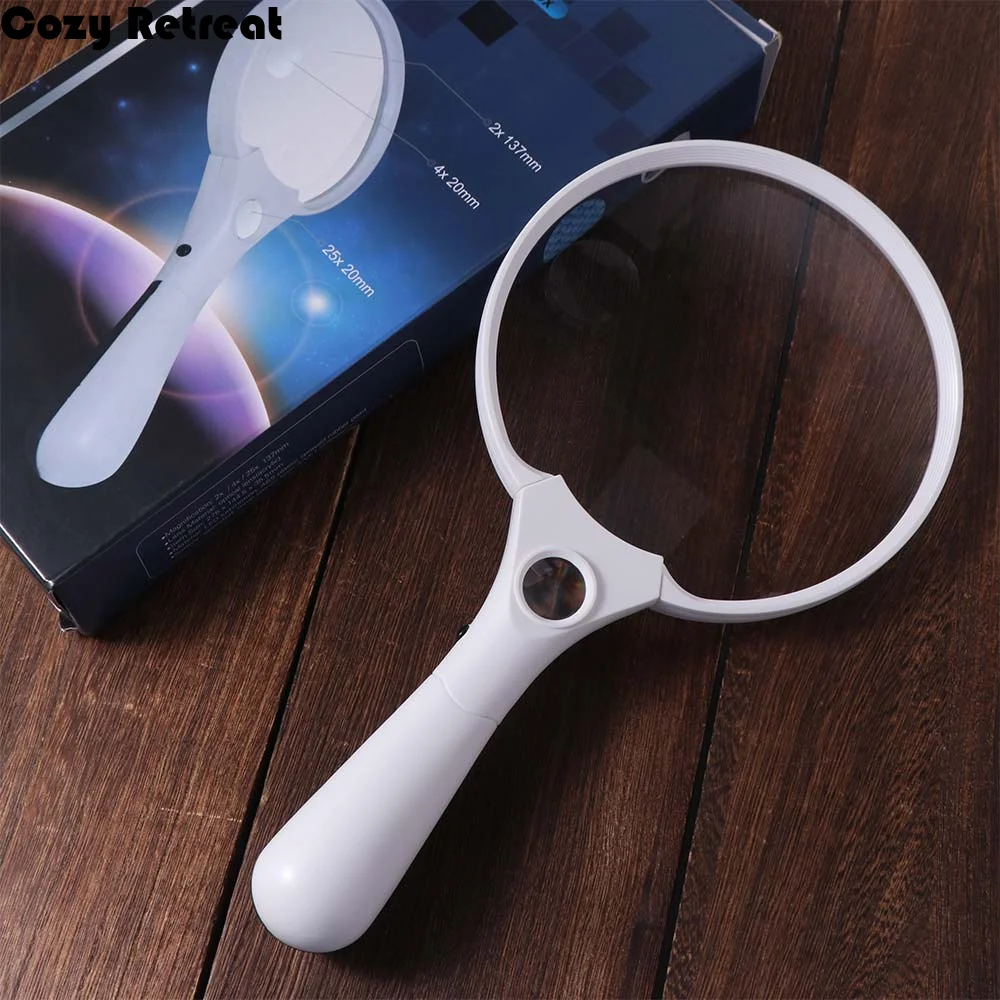 Extra Large 25x Magnifying Glass with 3LED Lights 137mm Loupe Lens Handheld Magnifying Glass Illuminated 2X 4X 25X
