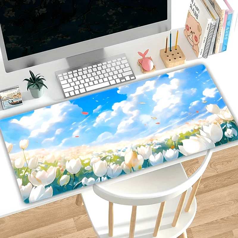 Extra-Large Gaming Mouse Pad Featuring a Tulip Flower Design, with a Rubber Base, Rectangular Non-Slip Surface, Precision Edges