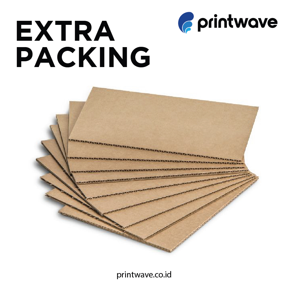 Extra packing agar produk tidak mudah kusut/robek saat pengiriman, khususnya untuk pemesanan ukuran kertas yang cukup besar seperti A5, A4, A3, Plano dan lainnya