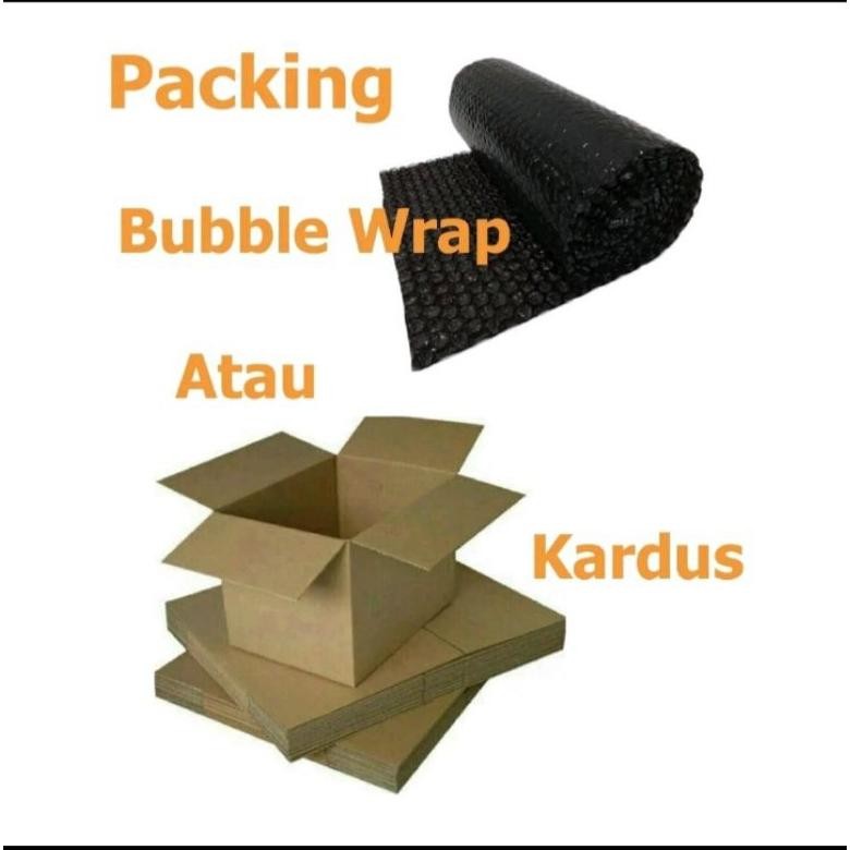 Karena setiap produk memiliki macam ukuran dan berat, supaya tidak melebihi berat volume dan ongkir tambahan saat pengiriman, kami tentukan paket Anda memakai bubble wrap atau kardus yang paling sesuai.