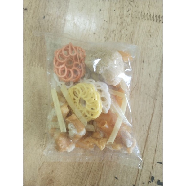 dalam 1 kemasan terdapat aneka kerupuk Seblak dan toping siomay mini.