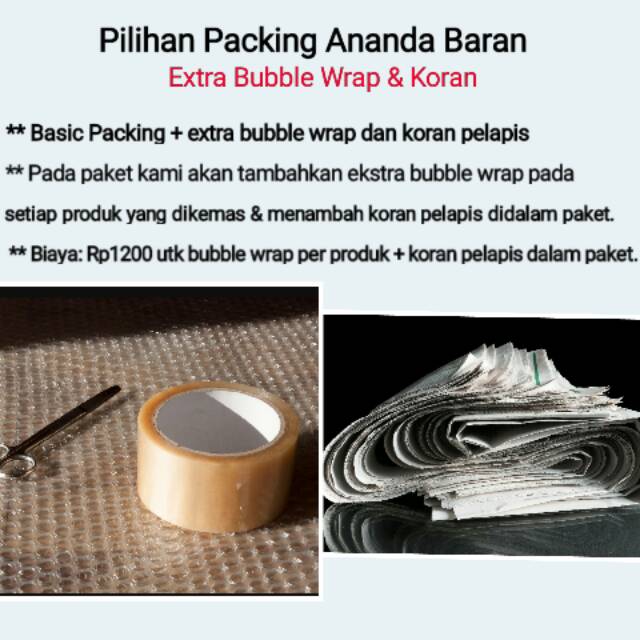 Hallo para pelanggan Ananda Baran, semoga semua dalam keadaan baik dan selalu semangat yaa... Kami punya info terbaru terkait kebijakan packing paket di Ananda Baran. Selama 8 tahun kami melayani semua customer, untuk packing kami hanya berlakukan satu jenis pilihan packing saja yaitu Basic Packing tanpa biaya tambahan.