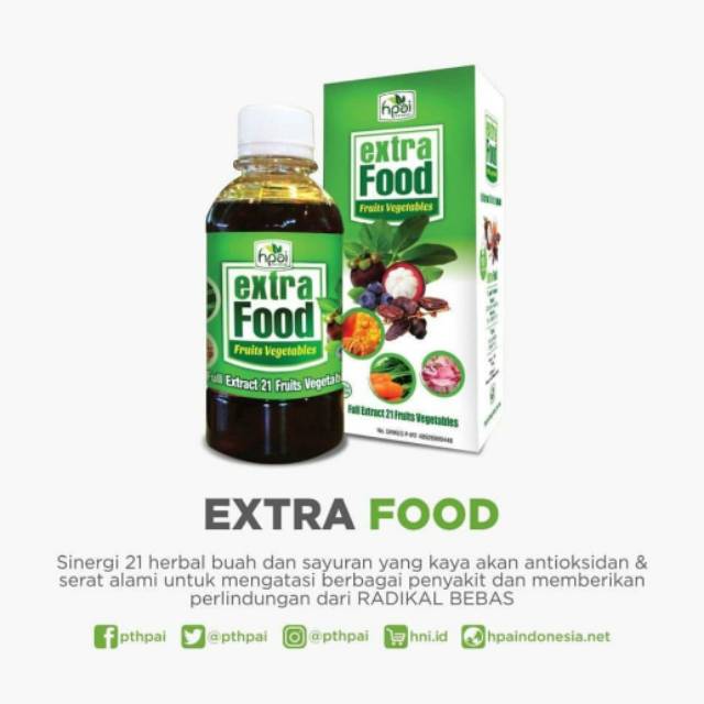 Extra Food HPAI, adalah makanan kesehatan alami yang dibuat dari sinergi 23 herbal buah-buahan dan sayuran yang kaya akan antioksidan & serat alami. Extra Food HPAI diformulasikan sebagai makanan suplemen herba yang berkhasiat untuk mengatasi berbagai penyakit dan bermanfaat bagi kesehatan tubuh. Dengan mengkonsumsi Extra Food HPAI ini akan memberikan perlindungan Anda dan keluarga dari RADIKAL BEBAS.