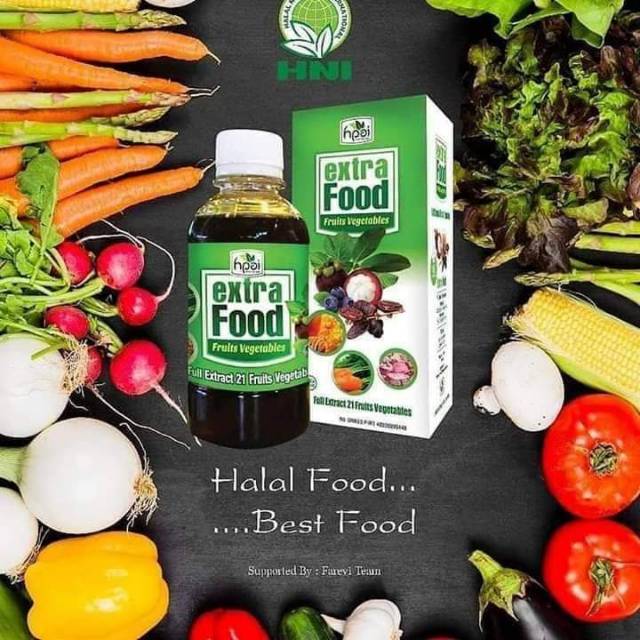 Extra Food HPAI dibuat dari sinergi 23 herbal buah-buahan dan sayuran yang kaya akan antioksidan & serat alami. Extra Food HPAI diformulasikan sebagai suplemen herba yang berkhasiat untuk mengatasi berbagai penyakit dan bermanfaat bagi kesehatan tubuh. Rutin mengonsumsi Extra Food HPAI akan memberikan perlindungan Anda dan keluarga dari RADIKAL BEBAS.