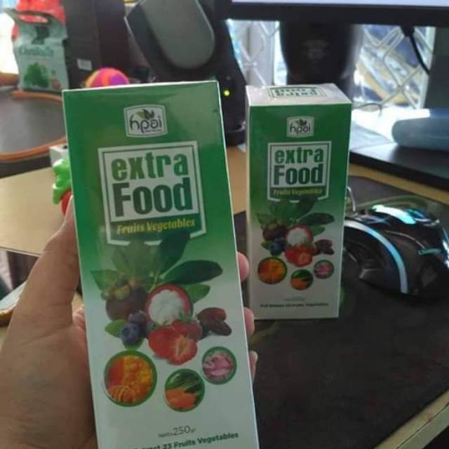 Extra Food HPAI, adalah makanan kesehatan alami yang dibuat dari sinergi 23 herbal buah-buahan dan sayuran yang kaya akan antioksidan & serat alami. Extra Food HPAI diformulasikan sebagai makanan suplemen herba yang berkhasiat untuk mengatasi berbagai penyakit dan bermanfaat bagi kesehatan tubuh. Dengan mengkonsumsi Extra Food HPAI ini akan memberikan perlindungan Anda dan keluarga dari RADIKAL BEBAS.