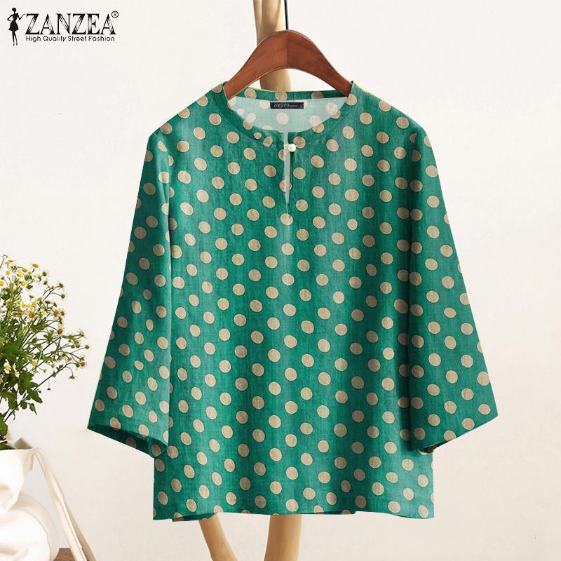 ZANZEA Women Round Neck 3/4 Sleeve Loose Casual Polka Dot Print Blouse S помаранчевий
