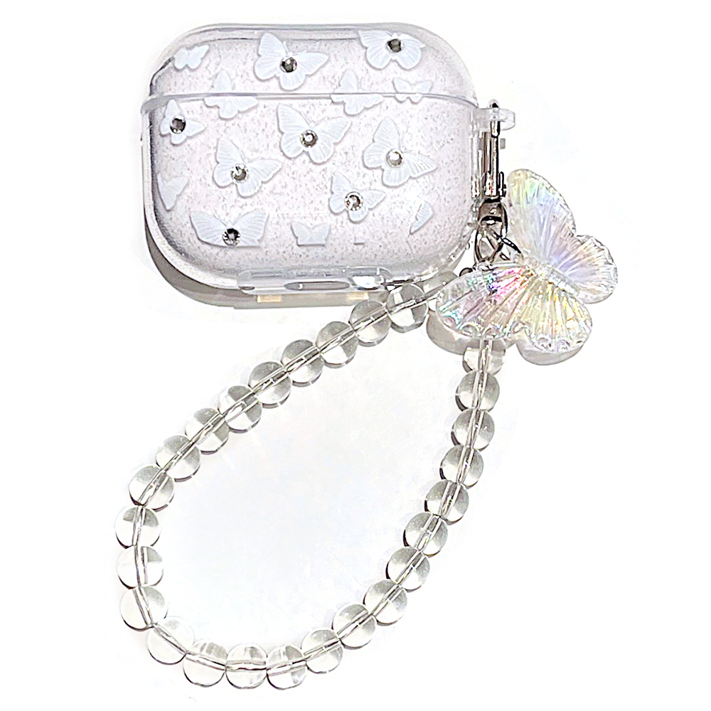 Für AirPods Pro 2 Strass -glitzer -tpu -fallmuster -druck -headset -ladekofferabdeckung Mit Handgelenkriemen - Weißer Schmetterling, AirPods Pro 2