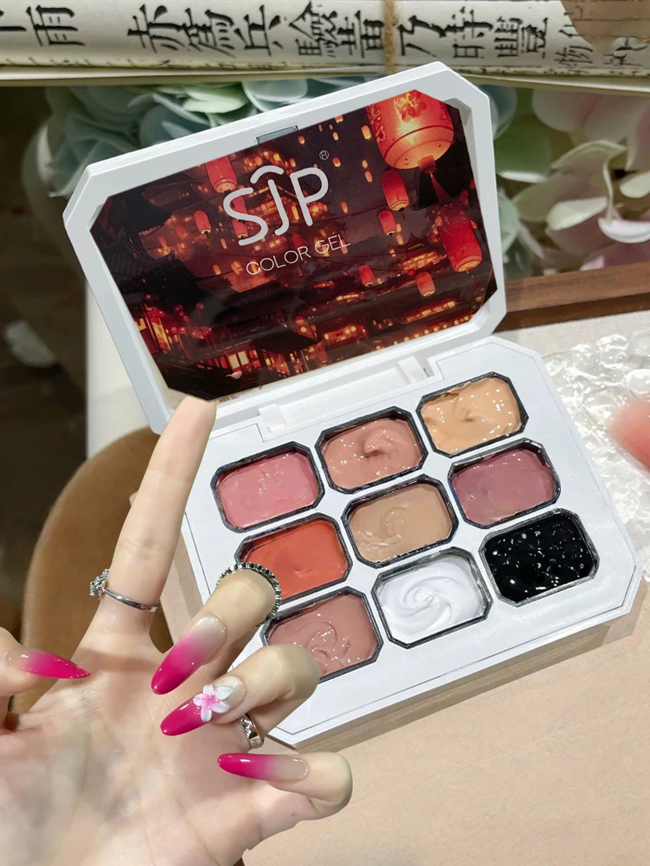 9-цветный розовый лак для ногтей, клей, размазанные банки, высокая насыщенность, популярный полутвердый лак для ногтей, дизайн ногтей