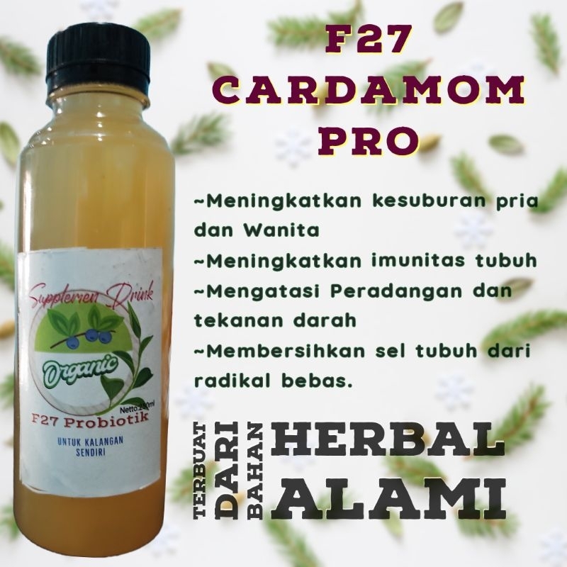 30 ml F27 Cardamom Pro bisa dicampur 100 ml air minum agar cepat di serap tubuh. sebaik diminum 1jam setelah minum obat..
