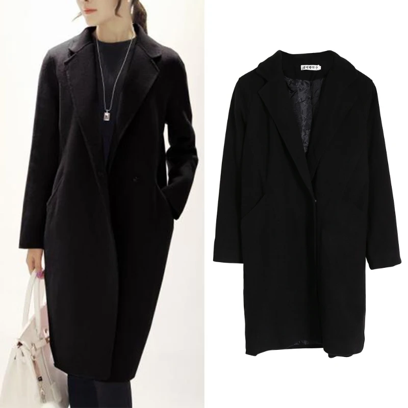 F62D женское длинное шерстяное пальто на одной пуговице, теплый плащ для куртки, зимнее пальто с лацканами