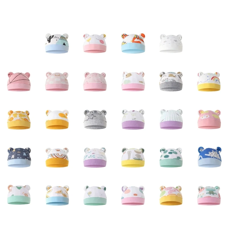 F62D Bear Ears Baby Hat Младенческая хлопковая шапочка для новорожденных Унисекс Головной убор Аксессуары