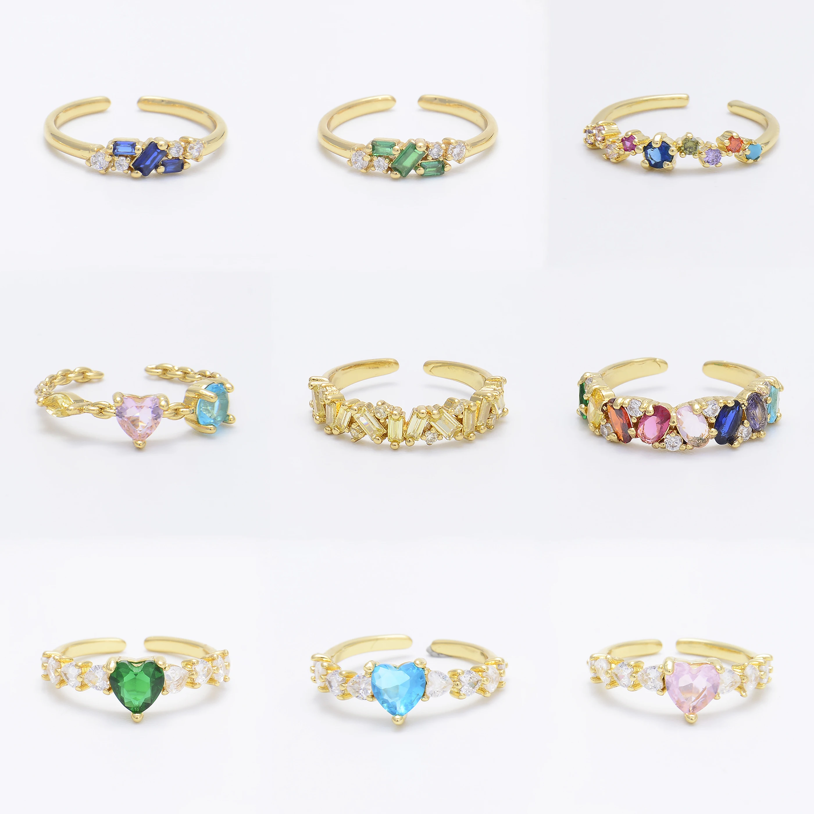 Colorful Rings for Women Heart Crystal-filled Paved CZ Zircon Romantic Jewelry Accessories Gold Color Brass Ring-finger Charms