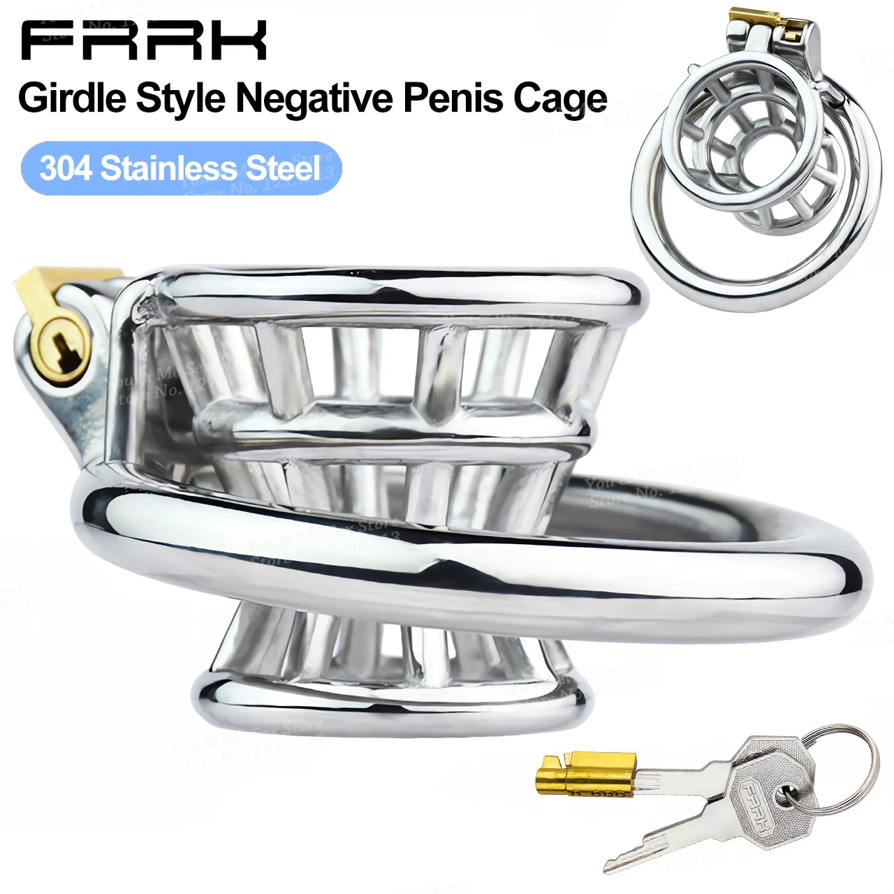 FAAK Basket Style Stainless Steel Negative Male Chastity Device Cage Belt Metal Penis Lock Cock Rings Adult BDSM Sex Toy For Gay